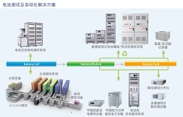 電池測試是一個十分復雜而且關鍵的過程,需要準確、精細、快速、可靠的測試設備和系統。而Chroma電子所提供的電池測試方案,則具備全面性、多樣性和先進性,能夠幫助客戶進行充電、放電、容量、效率、循環壽命、溫度及安全性等方面的綜合測試,并實現精確、實時、遠程和批量的數據采集和分析。在這個復雜的測試過程中,使用了不同種類的儀器,包括電子負載、電壓電流源、直流電源、電池測試儀及自動化測試系統等。