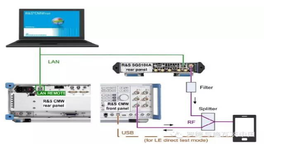 在使用CMW綜測儀開展藍牙射頻測試的基礎(chǔ)上,搭配R&S公司的自動化測試軟件CMWrun和外加信號源SGS100A或者SMB100A或者SMF100A,可以完成藍牙測試規(guī)范中幾乎所有的射頻測試項目。
