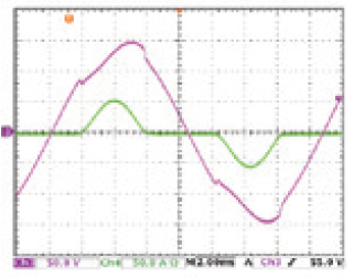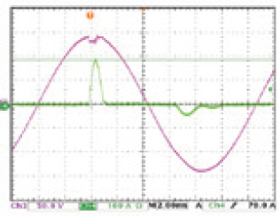 當待測物有較大的輸出阻抗時,如發電機,若無自動帶寬調整功能時,電流波形會較不穩定,如圖8所示。大部分的情況下,負載電流會產生震蕩并影響測試結果的準確性。