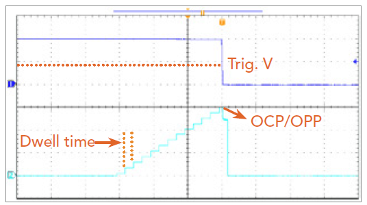 電源設計時,為確保使用者的安全及降低電源的損壞率,過電流保護或過功率保護機制往往是需要被考慮與設計,63200A的過電流與過功率測試,可提供使用者自行設定步階電流或步階功率來進行電源的過電流或過功率保護測試,并于電子負載判定此測試結果為Pass或Fail,測試過程中的最大功率值(Pmax),亦能自動擷取并顯示于顯示器上,能幫助使用者不透過示波器即可驗證所設計的過電流與過功率機制是否正確,更可為使用者減少許多測試時間。