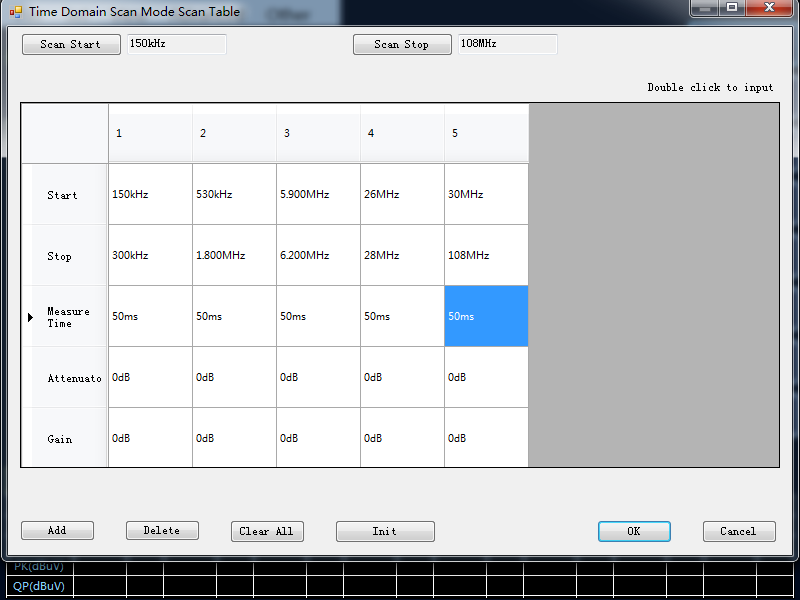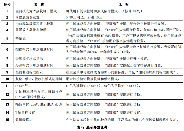 設置“起始頻率”,“終止頻率”,“掃描模式下單點測量時間”,“終測模式下單點測量時間”以及“裕量”。(設置方法可參考表 4)